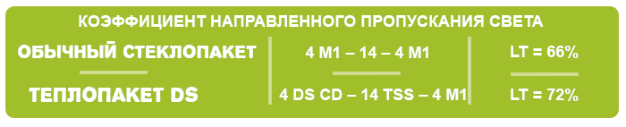 Теплопакет DS пропускает 72% естественного света! Double Silver с двойным серебряным нано-покрытием гарантирует максимальное естественное освещение.